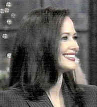 FLEA'S CALL: Janine, at least in my humble opinion, has always looked best with her hair at a medium length. Not as short as the first picture and not as long as the second. Not that either looks bad, I just think a medium length fuller style is more complimentary. Having said that, the length isn't the problem with the second style. The problem is a lack of bangs. Having a bit of a high forehead (not quite in the Helen Hunt range, but close), Janine has always looked better with them than without them. Interestingly, she also looks better with short bangs (at least a half inch ABOVE her eyebrows), than with long ones. I think cutting just a small fringe in the front (As opposed to what? The back?) would make all the difference in the world in the style. vvv NANCY O'DELL