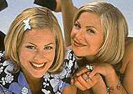 ![]() ...they always were the same (except possibly for the bangs, but you get the point). How else could they repeatedly do the never-fail switching roles storyline? Anyway, as the series wound down, the twins got pretty tired of looking alike as is evidence by this quote from an interview they gave (where T1 is Brittany and T2 is Cynthia): When their "SVH" contract runs out, T1 and T2 are busting loose: T1 is going to dye her hair red, and T2 is going to cut it short. "I'm just sick of the little blond hair, blue eyes, California girl look," says T2 in disgust. "I hate that," harmonizes T1. "We look like everybody else."Well, I don't know about Brittany's red hair, but Cynthia definitely lopped hers off. As a matter of fact, you've probably seen her in Biore and "10-10-9000" commercials recently. And if you haven't check out the pictures shown here (from the Sweet Valley Style Files). ![]() ![]() Oh, and if you were wondering, yes, the more conservative twin in real life played the wilder one on the show and vice versa. I think that's some sort of showbiz law.
