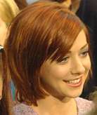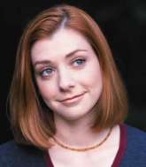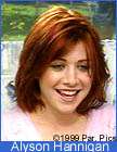 Some news on ALLYSON HANIGAN, everyone's favorite witch in training, Willow, in "Buffy: The Vampire Slayer" and costar of this summer's "American Pie". She has once again used her hiatus from the show to change her hair. I last reported on Allyson about this time last year when she cut her mid-back length red hair to shoulder-length. Now, it appears that she had gone just slightly shorter to the top of her shoulders and gone to a shag with long bangs. After watching the season finale of "Buffy", I thought the cut was essentially the same as before (with possibly a few more layers), so there was no real change there. But, after seeing her at the premiere of "American Pie" and having faithful reader Carrie M. give me her impressions of seeing her on "Late Night with Conan O'Brien", I realized that a change did actually take place.