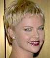 After FLEA'S CALL: The new cut is very fetching on Alyson, but that's not the most interesting thing about it. What's more intriguing is that as Alyson adopts shorter and more sophisticated styles, she looks closer and closer to her actual age of 25. Interesting, since she portrays a high school senior (now college freshman) on "Buffy" and characters in that same age range in movies. I guess as long as she goes with the no-makeup look, she'll still appear quite young, while now having the ability to also appear older for film roles. However, as Carrie M. pointed out, her hair color also continues to inexplicably become a brighter and brighter red. I guess the upside there is that she doesn't have to wear a reflective vest when jogging at night. I was all set to include a Snippet on CHARLIZE THERON because I couldn't find pictures. The bit o' news was that she had gone red for her role in the in-production Ben Affleck flick, "Reindeer Games". I also planned to report that it looked...well, not good. Fortunately, I managed to find pictures of the...uh...let's call it a hairstyle to make things simple. Sure, I'll grant that lack of style is probably due to what her character is supposed to look like in the movie, but that doesn't change the fact that Charlize is NOT a redhead (you can see what I mean below and decide if I'm right or really right). Anyway, thanks to the fine folks at Fashion Dish (and helpful reader Spike) I found a couple of even newer pictures. Apparently, filming of "Reindeer Games" must be over because Charlize is now sporting a black bob with micro bangs, as you can see in the next set of pictures below. Is it a wig? I don't think so, because first, super short bangs never quite look right with a wig, and second, what would be the point?