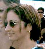 FLEA'S CALL: I guess the upside for Monica is that no one is going to mistake her for Brandy again anytime soon. The downside is that I think she could have picked a MUCH better cut. For example, look at Halle Berry's or Toni Braxton's old short styles or even Jada Pinkett's current ultra short crop. All are more flattering than Monica's new 'do...and Jada has even less hair than Monica. Maybe a bit of growth and restyling will help, but right now she looks like she has too much head and not enough hair. I have one more bit of news from the music scene in the form of GLORIA ESTEFAN. Gloria had let her hair get rather long again in the last year or so after quite a while of wearing it at about her shoulders. When in the shorter style, it was usually styled center parted and straight; a look that, given Gloria's features and round face shape, did less than nothing for her. Anyway, I believed that she had seen the error of her ways since in recent months since not only had she grown it well below her shoulders, but had also started wearing it curly again. Alas, twas not to be. Somewhere between cutting a new single with N'Sync and arriving at the newly created Teen Choice Awards (because there just aren't enough award shows), Gloria traded her curly locks for a chin-length, choppy shag a la Meg Ryan. ![]()